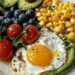 Start your day with a vibrant and nutritious avocado & corn breakfast plate! It’s a mix of creamy avocados and sweet corn. This dish is not just tasty but also a feast for your eyes.