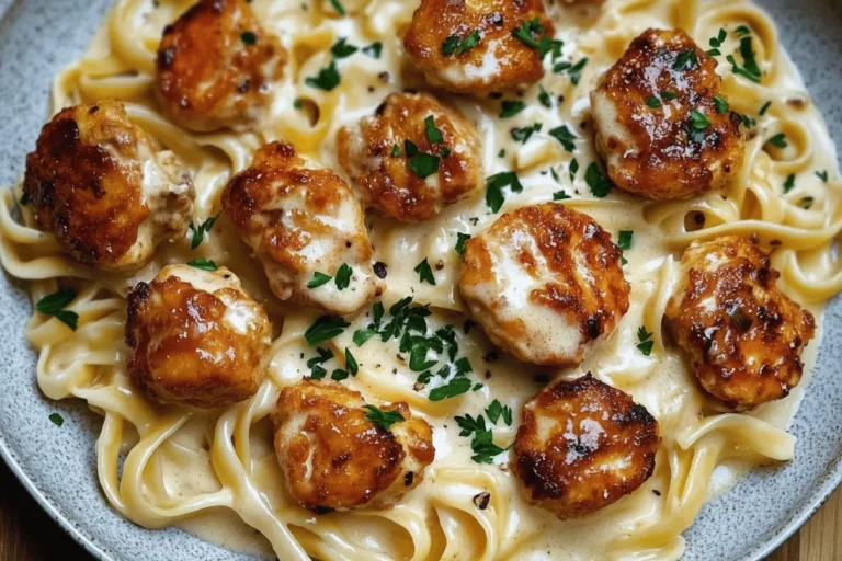 An easy comfort food classic, Garlic Butter Chicken Bites with Creamy Pasta is packed with juicy seared chicken, a buttery garlic sauce, and a dreamy parmesan cream pasta base. Perfect for weeknights or when you’re craving something rich and satisfying.