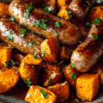 Honey glazed sausages and roasted sweet potatoes are perfect for a cozy meal. Pair it with mashed potatoes, green beans, or a fresh salad for a complete and fulfilling dish.